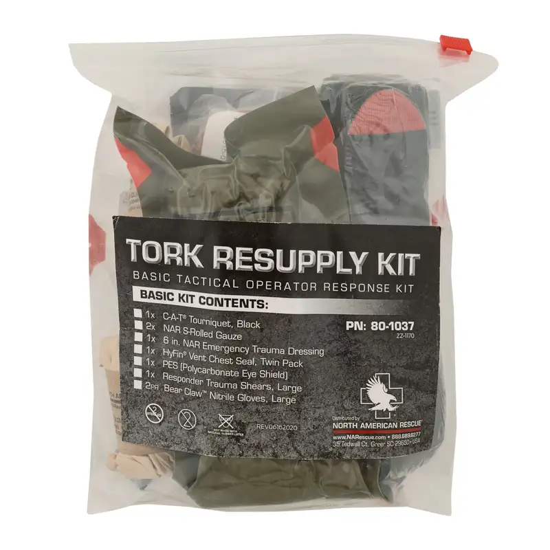 Tactical Operator Response Kit® (TORK®) розроблений як компактна індивідуальна аптечка для надання першої допомоги. В ній міститься все необхідне для попередження найтиповіших причин смерті на полі бою.