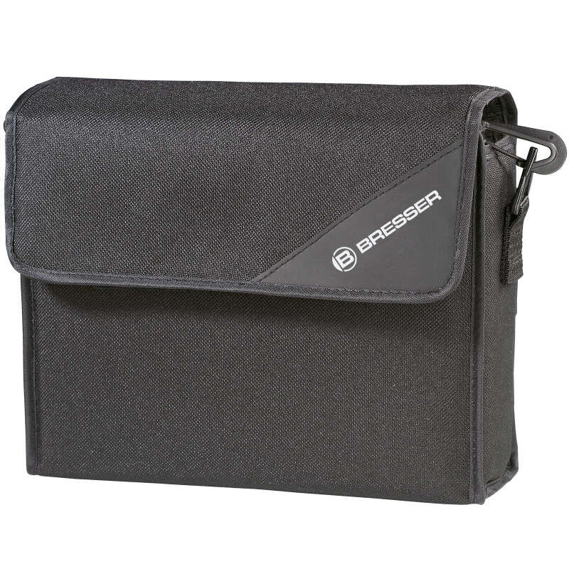 Німецькі біноклі Bresser надають найвищу якість оптики у поєднанні з ергономічним сучасним дизайном. Багато розробок, які застосовуються при виготовленні цих приладів, є унікальними та захищені патентами. Біноклі серії HUNTER – це прилади широкого цільового призначення. Маючи гідні оптичні якості, вони також доступні за ціною. Дана серія біноклів зручна як для прогулянкових спостережень, турпоходів, виїздів на полювання, так і для спостережень за живою природою та спортивними змаганнями. Бінокль BRESSER HUNTER 8x40 має прогумований, ударостійкий корпус. Спеціальне стійке до стирання, антивідблиску, повне покриття лінз блакитного відтінку захищає від подряпин і сприяє максимальному проникненню світла (не менше 75%), а призми, зроблені зі скла BK7, дозволять отримати більш якісну і контрастну картинку на окулярі. Різкість зображення регулюється центральним колесом, також передбачена можливість корекції діоптрію за допомогою кільця на правому окулярі, щоб підлаштувати пристрій під особисті особливості зору. Також можна відрегулювати міжосьову відстань для максимально комфортного спостереження. При подібних оптичних характеристиках поле цього бінокля перевершує аналогічні моделі інших виробників і при цьому збережені компактні розміри та невелика вага.
