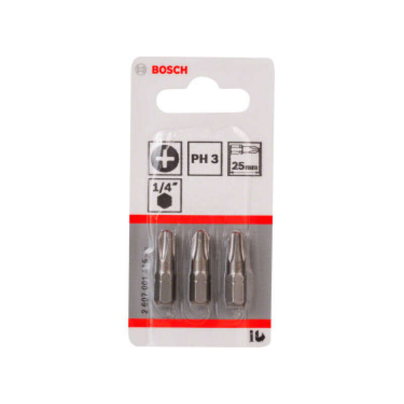 Біта Bosch Extra-Hart з шлицом PH 3, довжиною 25 мм. Виготовлена з високоякісної сталі посиленої твердості. В упаковці 3 шт.