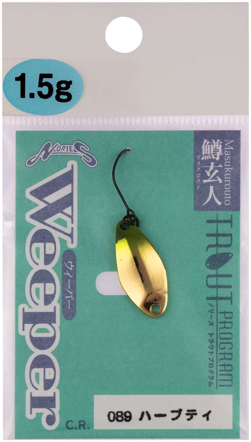 Блешня Nories Masukurouto Weeper – розроблена під керівництвом експерта Норіо Танабе після ретельного тестування в ставках з фореллю. Збалансована форма і маса дозволяють здійснювати дальній кидок навіть в умовах зустрічного вітру. Різні маси блешень володіють своїми власними технічними характеристиками - вигин, форма, товщина металу. Головною особливістю є ретельно розрахований центр тяжіння, який створює стабільні і різкі коливання. Серія Weeper має менш високочастотну гру у порівнянні з Rooney. А звичайна серія втілює в собі золоту середину характеристик частоти коливань. Система фарбування, з різними кольорами на звороті блешні візуально стимулює форель. Блешня Nories Masukurouto Weeper оснащена безбородим одинарним гачком.