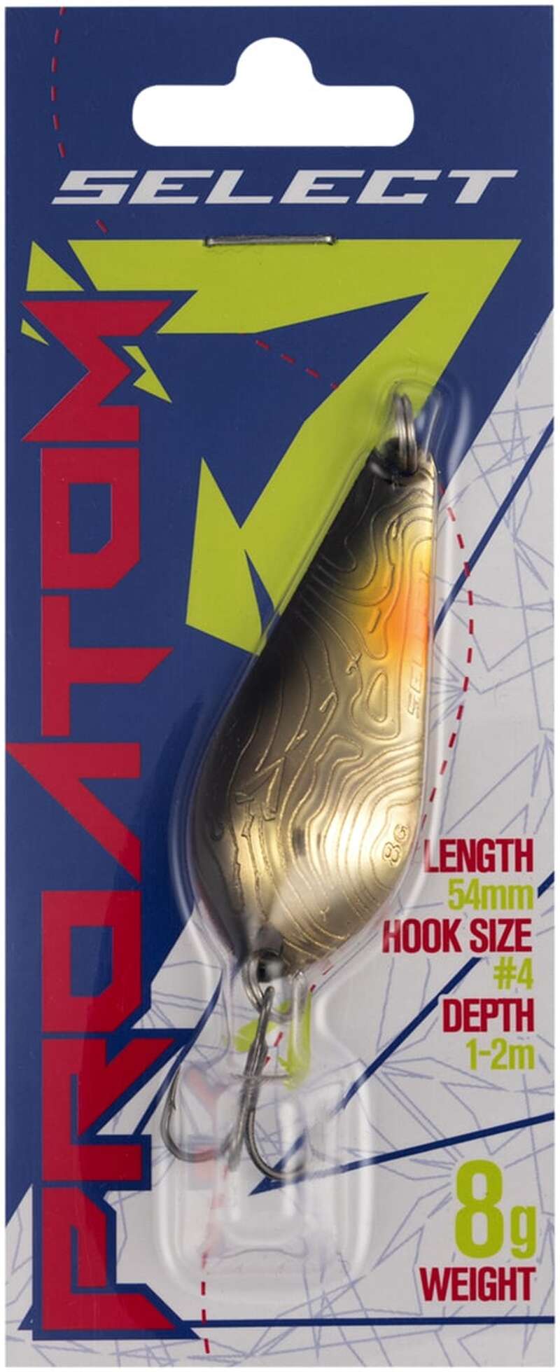 Блешня Select ProAtom - коливалка дуже популярної форми, яка часто використовується для лову щуки. Завдяки своїй унікальній власній грі на рівномірній проводці вона добре ловить не тільки "зубасту", але й іншу хижу рибу. Для того, щоб досягти успіху, достатньо проводити блешню в середньому темпі, при цьому вона стабільно приноситиме результат. Хоча доповнення пауз та різних ривків допоможуть привнести різноманітність у гру та збільшити кількість клювань.