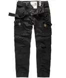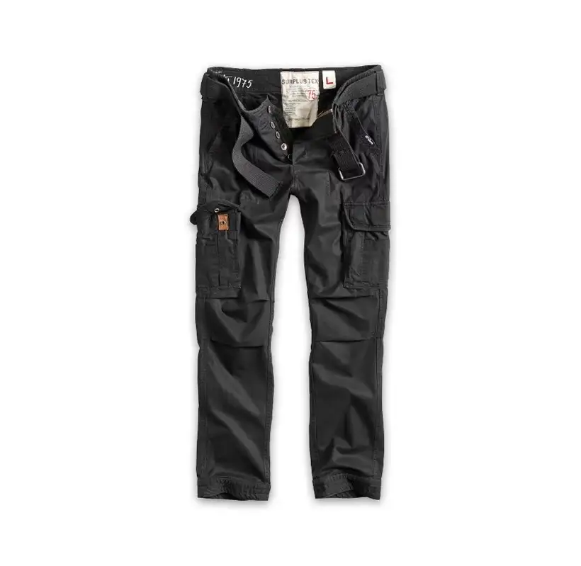 SURPLUS goes Fashion! Штани Premium Trousers Slimmy - чергова новинка сезону. Функціональні і декоративні деталі брюк були перейняті від всім відомого бестселера SURPLUS Premium Vintage Trousers. Звужений фасон штанів в армійському стилі з 100% бавовни, на ремені, великі кишені на штанинах, дві бічні кишені мають багато місця для ваших дрібниць. SURPLUS спеціально поєднали Cargo-Look і вузький крій, який зараз в моді. Ззаду дві кишені на кнопках. Всі кнопки укріплені шкіряною підкладкою як у Premium Trousers. Цей новий вид штанів абсолютно легко комбінується з різними стилями , їх можна одягати з піджаком, що робить цю комбінацію дуже модною або просто з сорочкою SURPLUS Woodcutter і ваш "Casual Look" неперевершений.