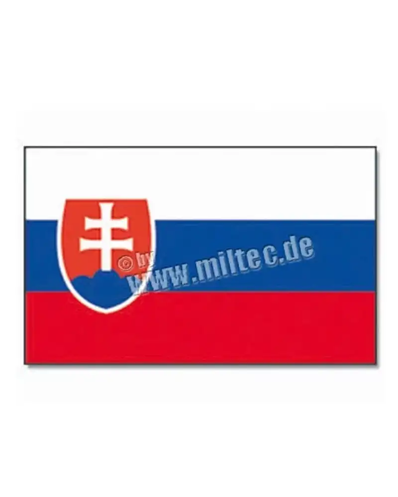 Прапор Словаччини від компанії Мілтек являє собою прямокутне полотнище. Відношення ширини прапора до його довжини 2:3. Матеріал виготовлення - 100% поліестер. Розміри - 90х150 см. В місцях кріплення до флагштока - два люверса (верхній і нижній). Краї периметру підігнуті і прошиті подвійним рядком.