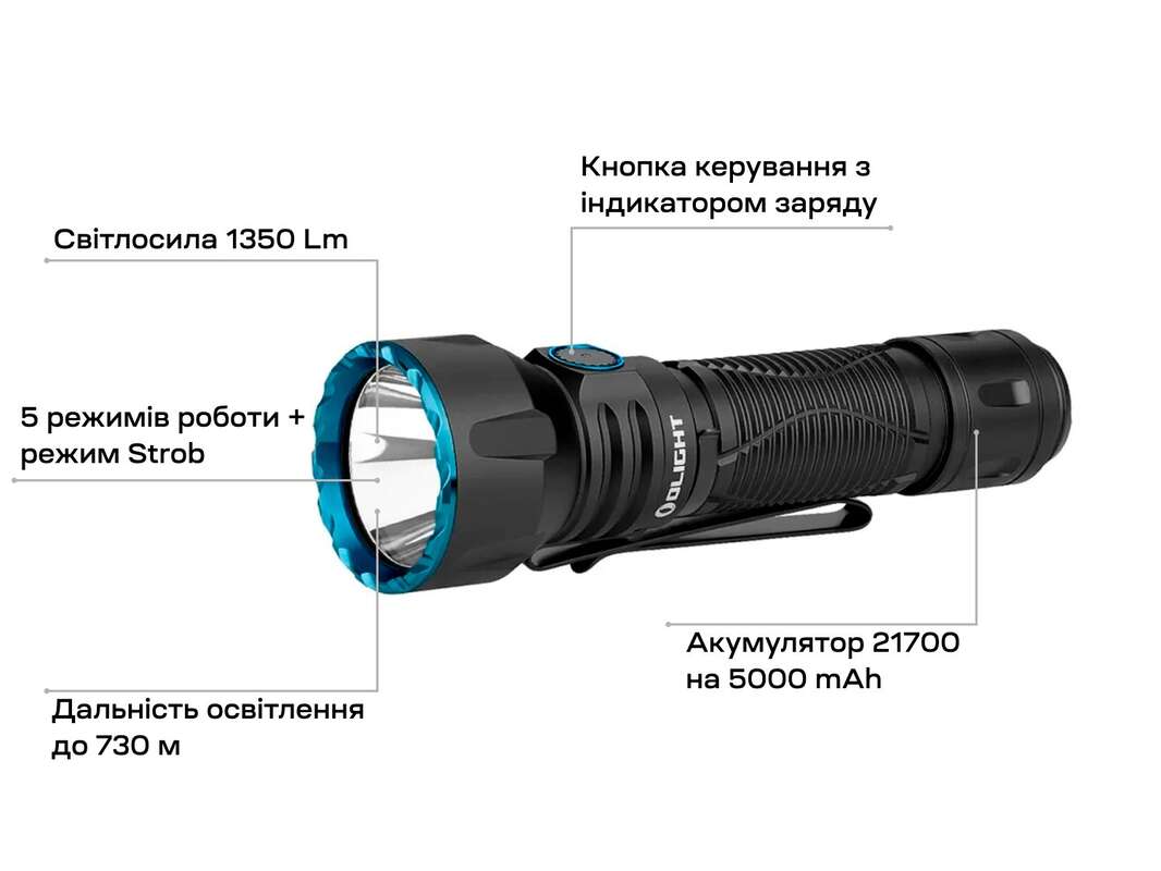 В якості живлення використовується 2 акумулятора типу 21700. Дальність світіння збільшилася на 300 метрів і тепер становить 1300 м.