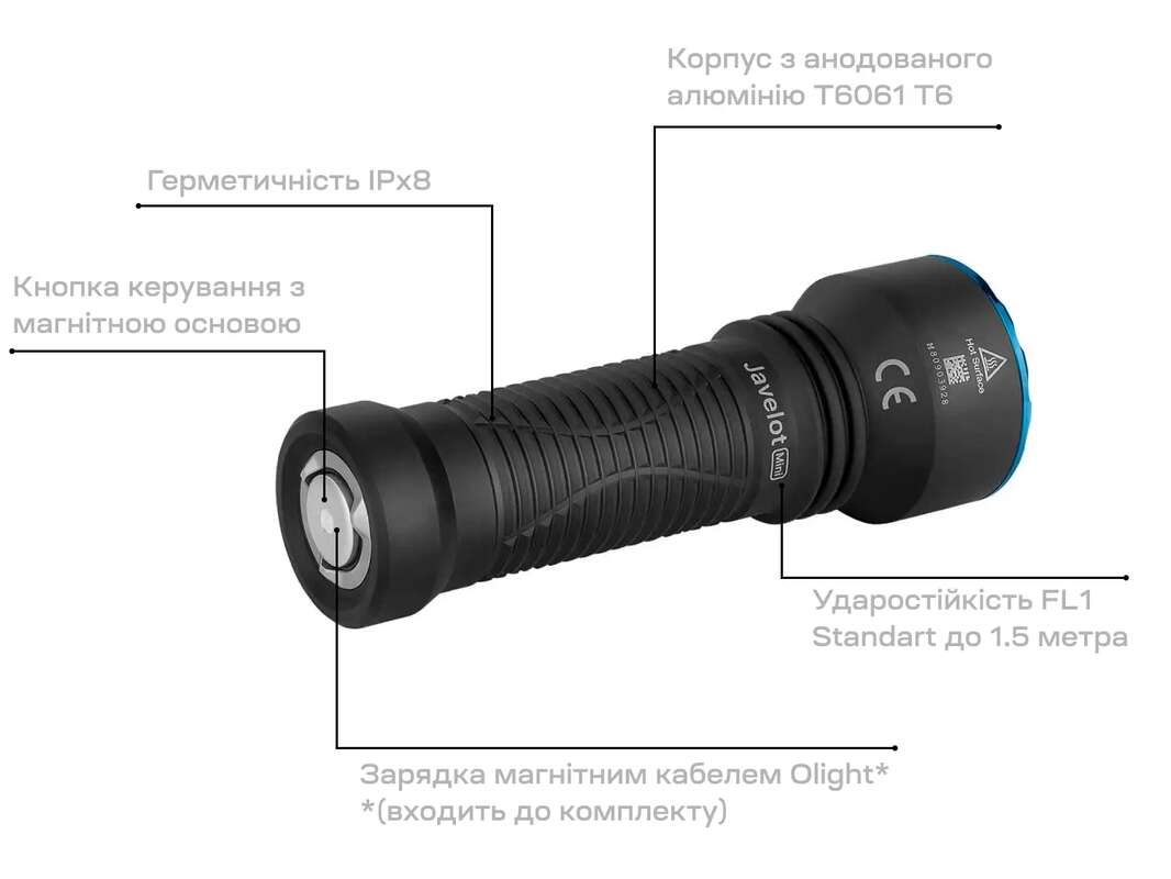 Javelot Mini – зменшена версія моделі Javelot. Модель Mini відрізняється компактними габаритами, але не поступається потужністю своєму повнорозмірному братові. Максимальний рівень яскравості тепер становить 1000 люмен, а дальність світіння – 600 метрів. Джерелом живлення виступає Li-ion акумулятор на 2040 мАh з максимальним часом безперервної роботи до 279 хвилин. Заряджається ліхтар за допомогою магнітної зарядки, яка йде у комплекті. Матеріал корпусу – алюмінієвий сплав, а рівень захисту від вологи – IPX8. На торці ліхтаря розміщений потужний магніт для кріплення будь-яку металеву поверхню.