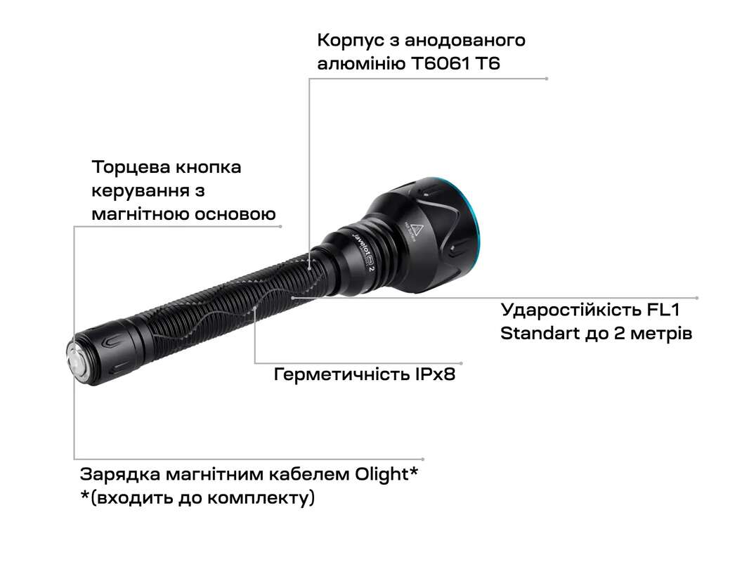 Роботоздатність моделі забезпечується монолітним кастомізованим акумуляторним блоком із двох елементів 21700 загальною ємністю 10000 mA/h. Підзарядка ліхтаря здійснюється за допомогою магнітного конектора.