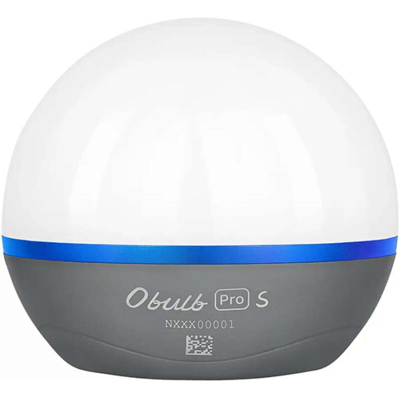 Кемпінговий ліхтар Olight Obulb Pro – модифікація моделі Obulb MC. Найважливіша відмінність – дистанційне керування режимами та кольорами через програму на смартфоні. Максимальна дистанція – 50 метрів, підключення через Bluetooth. Якщо вам потрібно увімкнути в темряві освітлення, змінити режим або колір - додаток допоможе вам. Також, завдяки додатку, можна групувати кілька ліхтарів та вибірково вмикати. Модель Obulb Pro також отримала збільшену яскравість до 240 люмен та потужний Li-po акумулятор ємністю 1650 mAh, що забезпечує до 84 годин роботи. Для швидкого заряджання в корпусі передбачений магнітний роз'єм. Час повного заряджання становить 3 години. Ліхтар оснащений 4 режимами роботи: Max, Low, Color Fantasy та Strob. Корпус виготовлений з полікарбонату та термопласту та має рівень вологозахисту IPx7. Завдяки легкій вазі та невеликим габаритам, кемпінговий ліхтар Olight Obulb Pro без проблем можна брати із собою у походи або кемпінг для створення максимально "лампової" атмосфери. У комплекті йде спеціальний фірмовий круглий магніт з клейкою стороною, який можна прикріпити на необхідну поверхню і примагнітити туди ліхтар (не входить до комплекту моделі Pro S). Також модельний ряд має модифікацію Obulb Pro S, в якій встановлено Li-Po акумулятор, що забезпечує до 156 годин роботи.