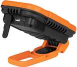 Olight Swivel Pro Max – модернізована модель кемпінгового ліхтаря Swivel. Унікальна конструкція, можливість освітлення на 180°, наявність магнітів для кріплення та можливість підзарядки роблять цей ліхтар незамінним помічником на кожен день. Головна особливість моделі – її конструкція. Ліхтар складається з 2-х елементів: головного корпусу та підставки-карабіна, яку можна складати та розкладати. На головному корпусі розміщено світлодіодну COB панель широкого світла потужністю до 1600 люмен. Є 5 режимів роботи: 3 з широким кутом освітлення і 2 зі сфокусованим. Максимальна дальність освітлення – 50 метрів. Ліхтар працює від вбудованого Li-Ion акумулятора ємністю 10400 mA/h. Є порт заряджання стандарту USB Type C, а також індикатор розрядженості. Корпус ліхтаря виконаний з міцного АВС пластику і має ступінь захисту від вологи IPx4.