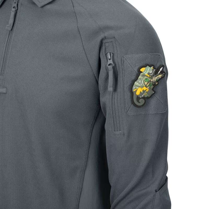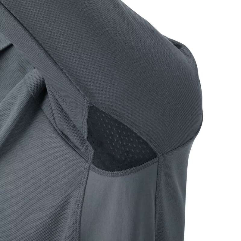 Helikon-Tex® RANGE Polo Shirt - поло з довгими рукавами розроблена у співпраці з професійними стрільцями. Тканина приємна на дотик, швидко сохне. Вставки з VersaStretch® захищають виріб від зношування при частому користуванні кобурою чи іншими аксесурами, закріпленими з боків на поясі. У ділянці ліктьових суглобів є внутрішні кишені для вкладишів. Сітка в пахвах підвищує циркуляцію повітря. Velcro панелі на рукавах дозволяють легко налаштувати персоналізацію.