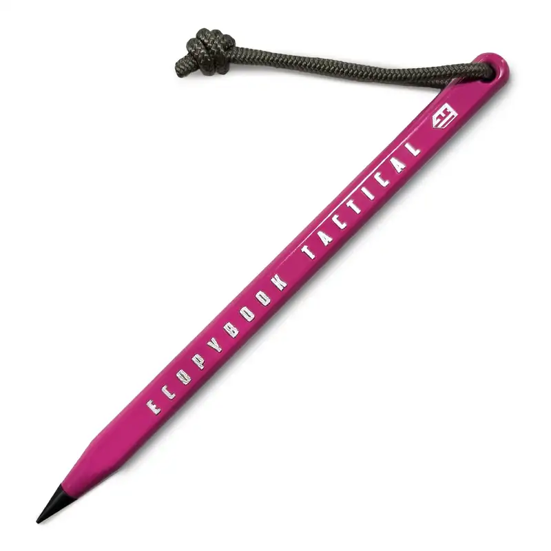 All-Weather Pencil - це тактичний олівець від бренду Ecopybook Tactical®. Він буде універсальним помічником в будь-яких ситуаціях. Його можна використовувати з будь-якими блокнотами, але рекомендовано з блокнотами Ecopybook Tactical®. Версія Pinky була розроблена для любителів активного відпочинку, адже яскраве забарвлення дозволяє легше знайти олівець на будь-якій місцевості.