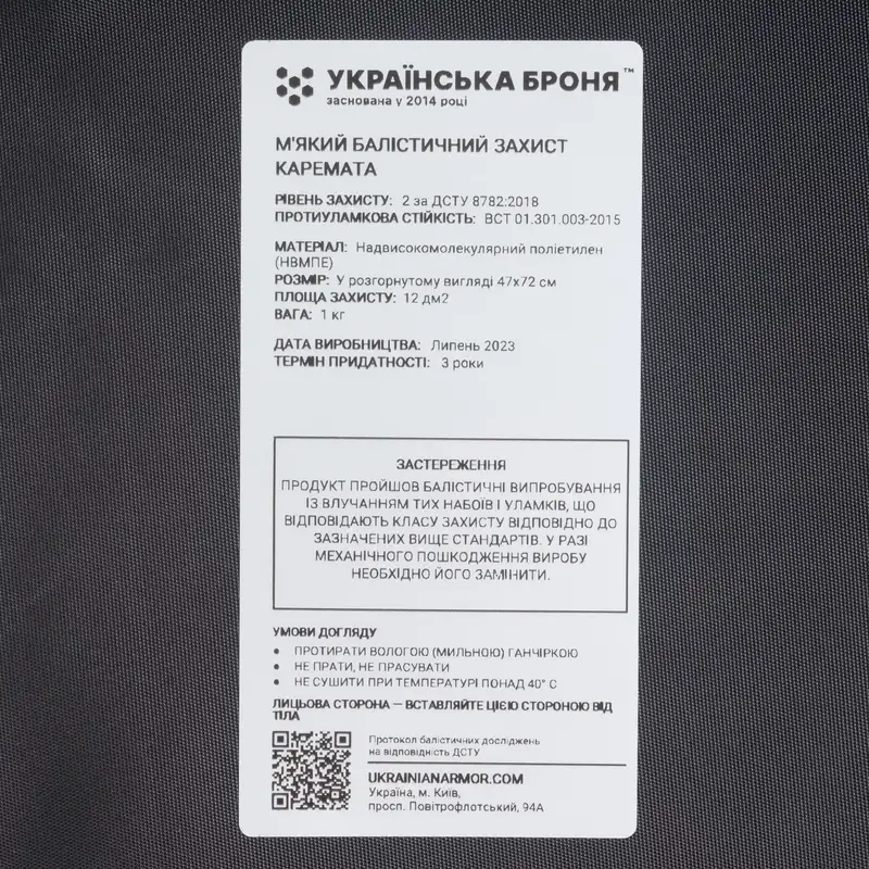 - матеріал - Cordura 1000D з NIR просоченням (100% Нейлон)