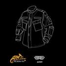 Helikon-Tex® CPU® Shirt - кітель CPU® (Combat Patrol Uniform®) був розроблений у відповідності з останніми стандартами уніформи польських збройних сил від 2010 року. Виготовлений з NyCo Ripstop, Mil-Spec, Nir treated (50% нейлон, 50% бавовна): нейлоново-бавовняної тканини щільністю 220 г/м² зі спеціальним зміцнюючим плетінням (Ripstop). Матеріал забарвлений спеціальними барвниками з різною відбивною здатністю в інфрачервоному діапазоні. Технологія NIR дозволяє значно знизити ймовірність виявлення людини за допомогою оптоелектронних приладів. Відрізняється практичністю і функціональністю.