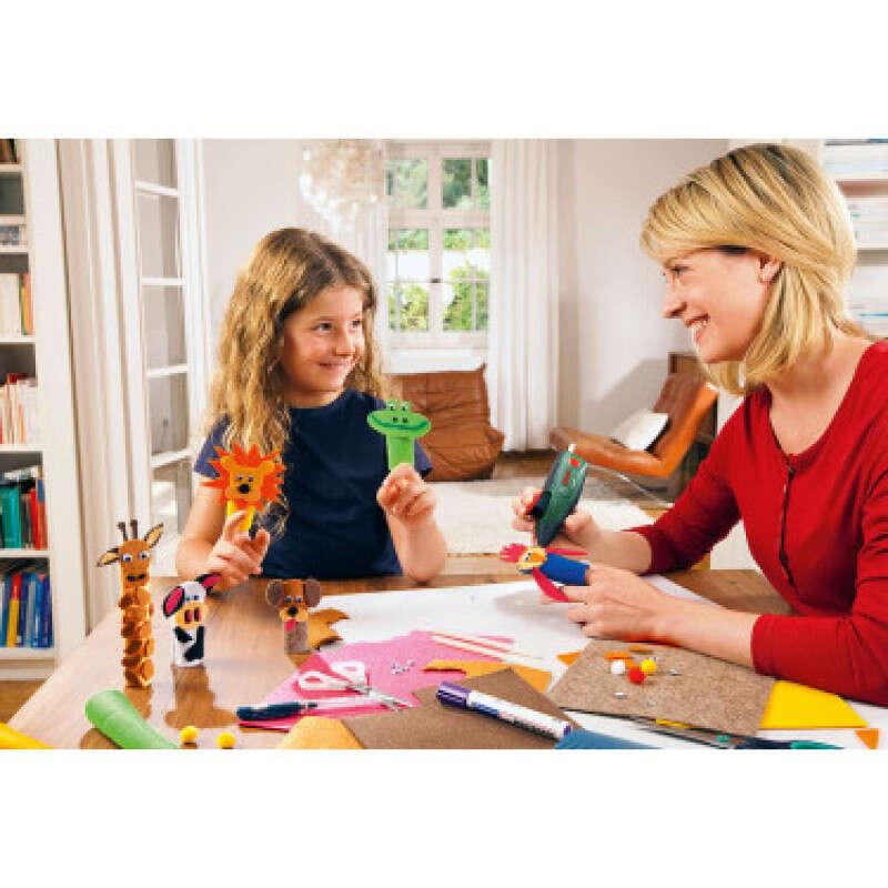 - Легка (140 г), компактна ручка з вбудованим акумулятором 3,6 V 1,5 Ah лише за 15 секунд нагріє клейовий стрижень до 170 градусів.
