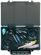 Коробка DaiichiSeiko MC Case - серія містких коробок, які мають компактні розміри та виготовлені з якісного матеріалу - поліпропілену, стійкого до механічних пошкоджень та подряпин. Якісні поворотні петлі та застібки збільшують її надійність, дозволяючи тривалий час без проблем користуватися виробом. Прозора кришка допомагає побачити, що знаходиться усередині, не відкриваючи її. Коробка DaiichiSeiko MC Case дозволяє тримати рибальські приманки та аксесуари в порядку.