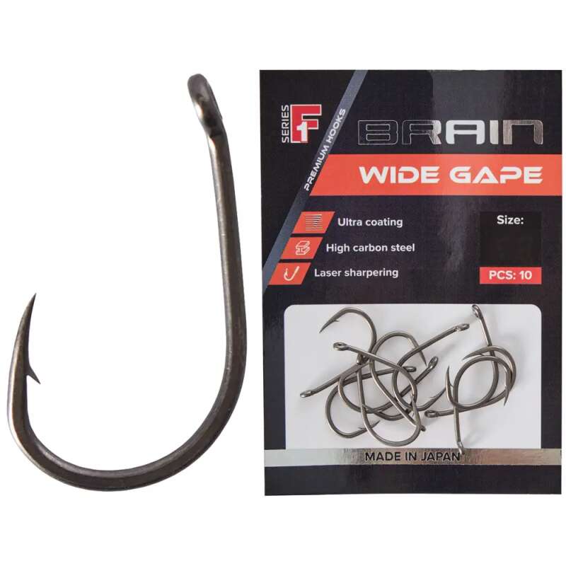 Гачок Brain Wide Gap із прямою цівкою і загнутим всередину жалом, за формою нагадує гачок Brain Snagger, але виконаний з набагато більш тонкого японського високовуглецевого сталевого дроту «ЗЅ-80» . Для порівняння: товщина дроту гачка Brain Wide Gape №4 становить 0,36 мм, а аналогічного розміру Snagger виготовлений з дроту 0,47 мм. Завдяки своїй товщині гачок Brain Wide Gape є універсальним і відмінно працює на різних монтажах, а також з найрізноманітнішими насадками, в тому числі і плаваючими.
