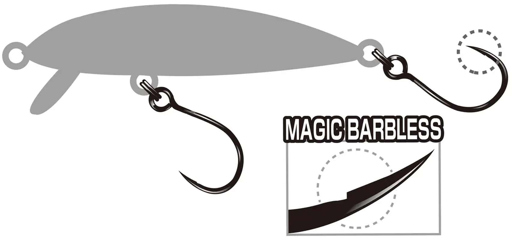 Гачок Decoy AH-3 Area Hook III призначений для встановлення на воблери, що застосовуються у форелевій риболовлі. Для того щоб він правильно розташовувався на заводному кільці приманки, його вушко розташоване в одну лінію з цівкою. Широкий круглий вигин забезпечує надійне підсікання риби та її утримання під час виважування. Decoy AH-3 Area Hook III оснащений унікальною мікроборідкою Magic Barbless, яка одночасно зменшує кількість сходів, а також дозволяє безперешкодно відпускати форель, не пошкодивши її. Завдяки використанню тонкого дроту, гачок не впливає на гру воблера, а його матове чорне забарвлення не відлякує обережну рибу.