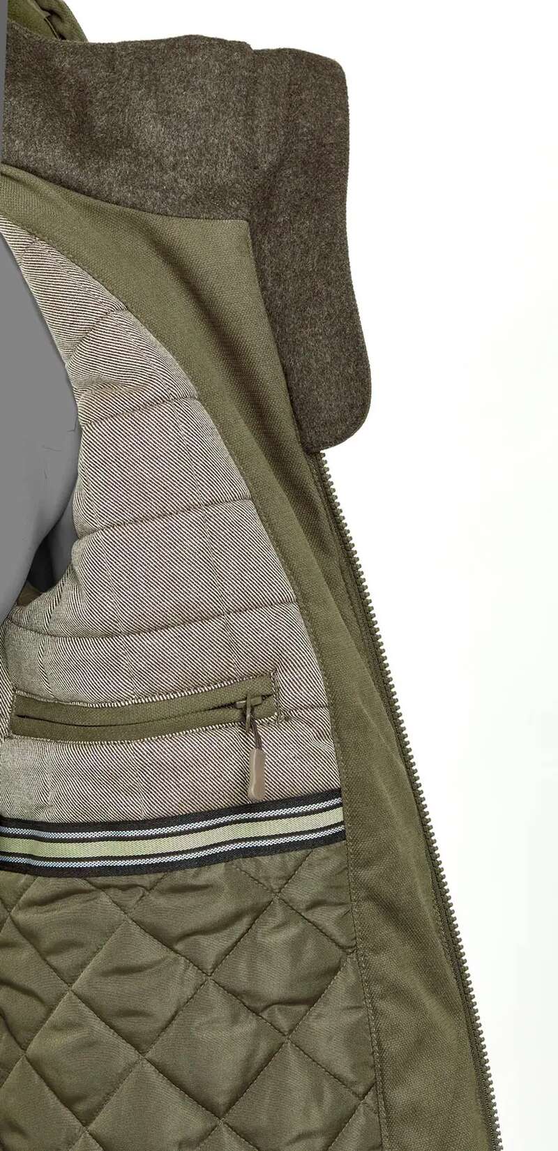 Високий комір і регульований капюшон, що відстібається, забезпечують додатковий захист від вітру й дощу, а чотири зовнішні кишені на водонепроникній блискавці й одна внутрішня кишеня надають достатньо місця для зберігання важливих особистих речей. Куртка оснащена вентиляційними отворами на блискавці під пахвами, що забезпечує додаткову вентиляцію за потреби. Регульовані манжети та затяжка внизу куртки дають змогу індивідуалізувати посадку та зробити більш ефективний захист від холоду.