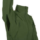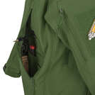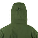 Куртка має 7 кишень: дві нагрудні на блискавках YKK з органайзерами та D-кільцями, дві на верхній частині рукавів із отворами для кабелів, одну на лівому передпліччі, одну внутрішню на липучці та одну велику "канальну" кишеню внизу спини з двома входами. Капюшон, захований у комірі, швидко розгортається за допомогою двосторонньої блискавки та регулюється під розмір голови, навіть із шоломом чи гарнітурою. Є вентиляційні блискавки під пахвами, Velcro-панелі на рукавах для патчів, посилення на ліктях і регульовані манжети на липучках.