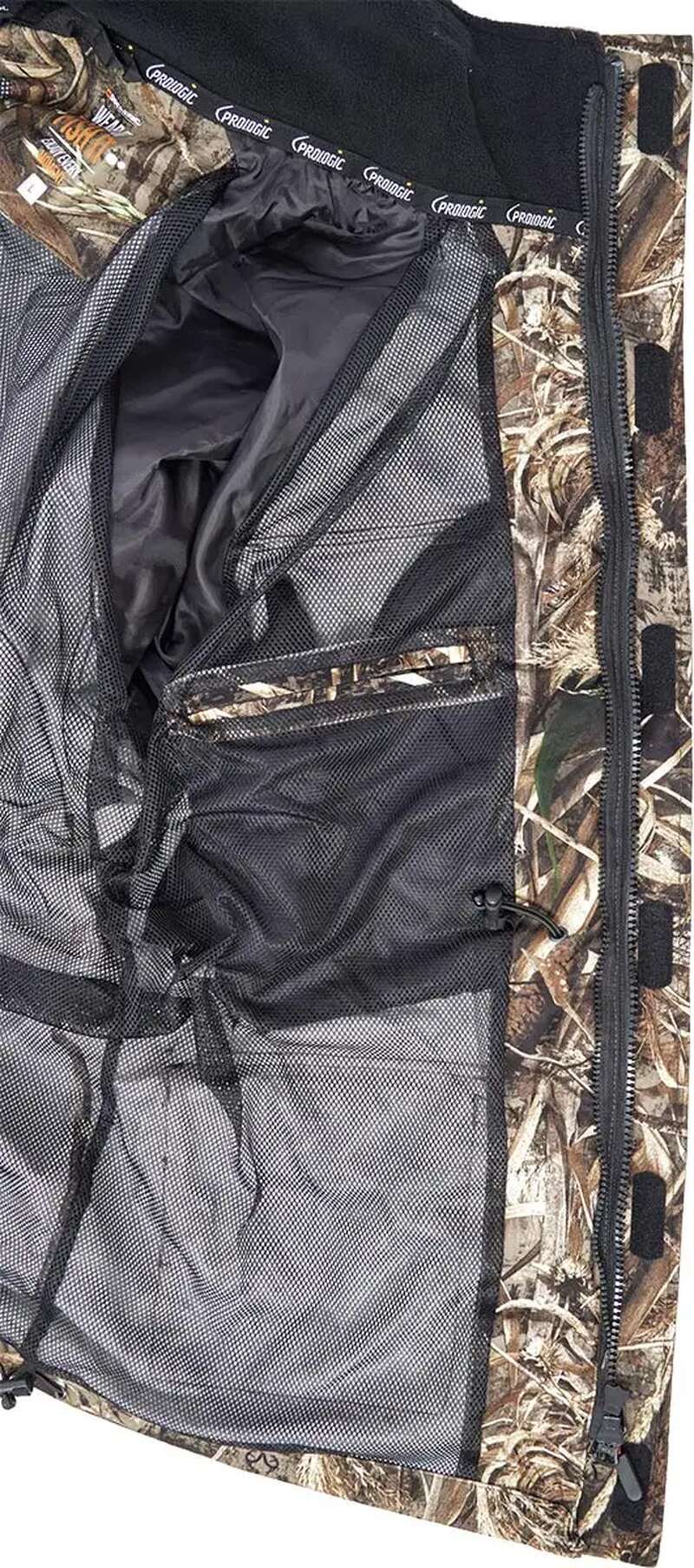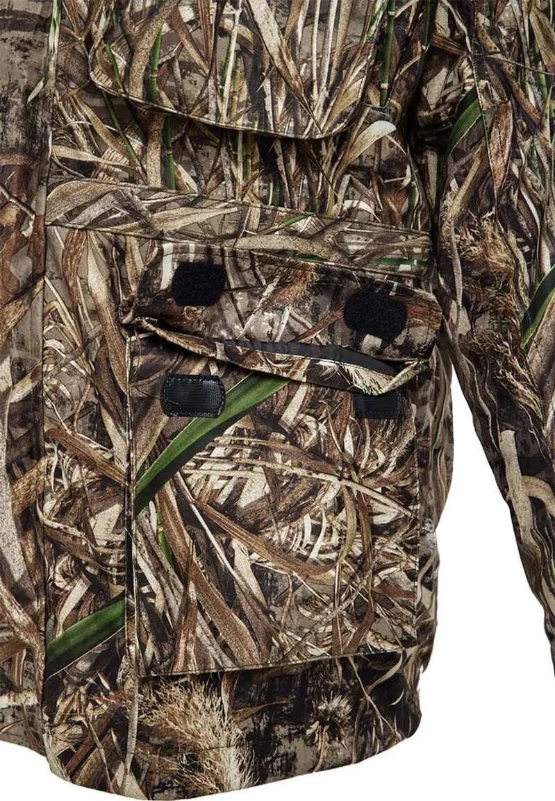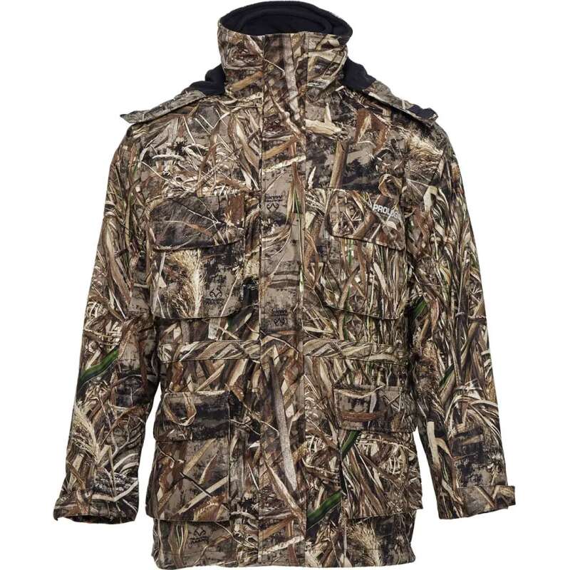 Куртка Prologic Max5 Thermo Armour Pro - дуже легкий і надзвичайно теплий одяг для самої холодної пори року. Але, завдяки можливості демонтажу теплої підкладки, може використовуватися в якості верхнього одягу в прохолодну і вологу погоду навесні і восени. Верхня тканина з малюнком Max5 володіє 100% водонепроникністю 8 000 мм і повітропроникністю 3 000 г / м2 год завдяки поліуретановому ламінуванню. Куртка однаково ефективно може використовуватися як для риболовлі, так і для полювання, оскільки є абсолютно тихою.
