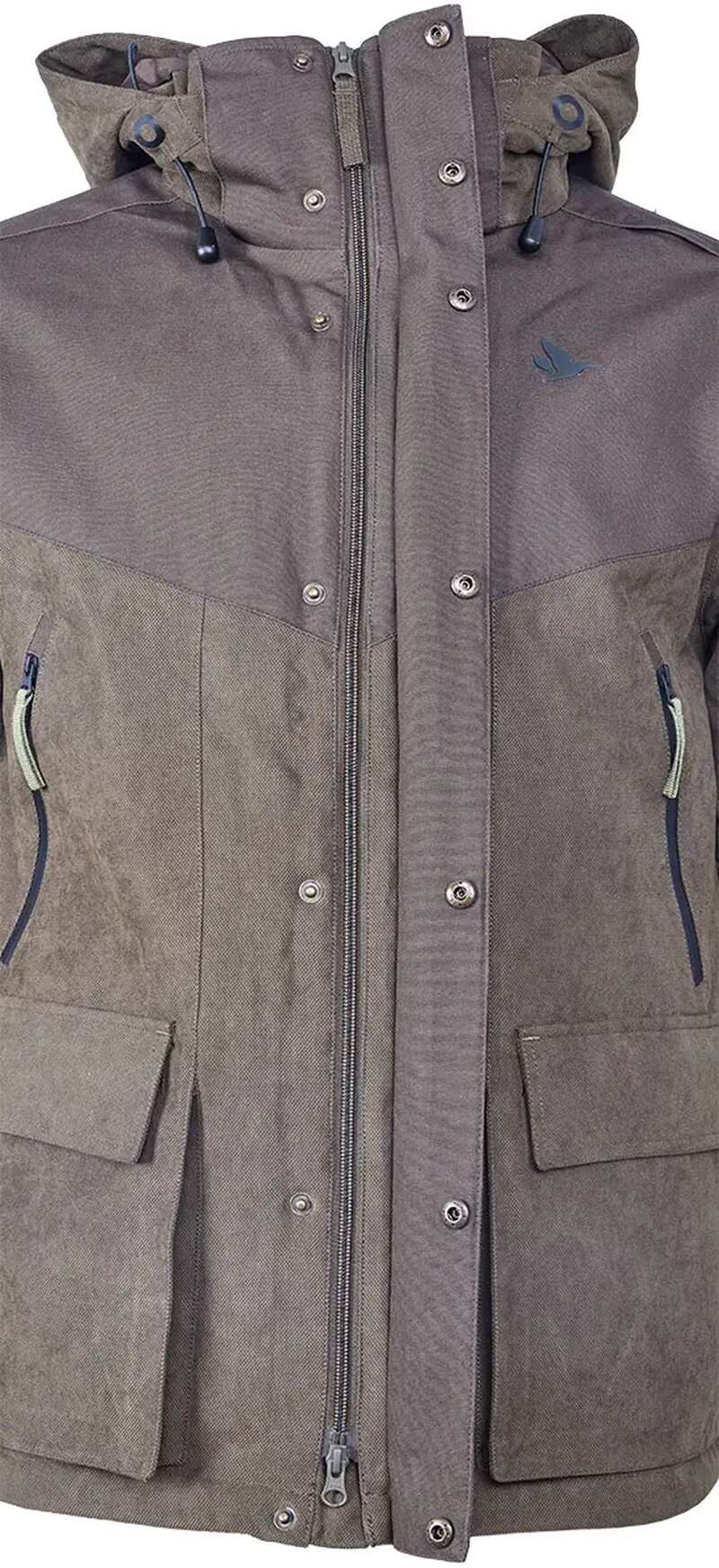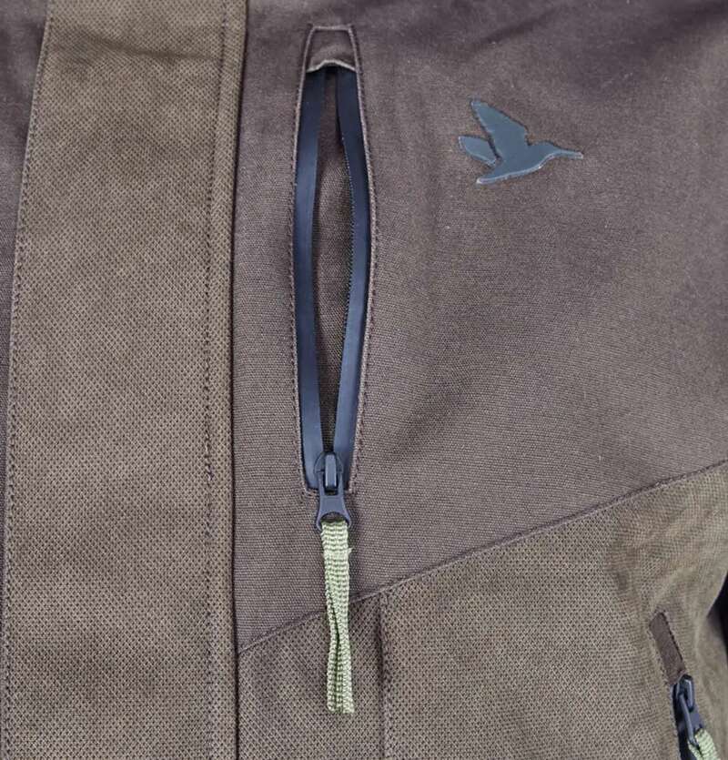 Куртка Seeland Helt II призначена для полювання в осінньо-зимовий період — сніг, дощ. Модель Helt II виготовлена з малошумного поліестеру з водовідштовхувальним просоченням Scotchgard. За тепло та комфорт, навіть коли температура опускається до нуля, відповідає синтетичний утеплювач Thinsulate™. А мембрана SEETEX® наділяє куртку вітро-, водо- та брудо-захистом. На зовнішній стороні розміщена міцна двостороння блискавка з фурнітурою YKK, а поверх неї розташований вітрозахисний клапан на кнопках. Три зовнішні кишені на блискавці захищають вміст від вологи. Також є дві великі передні кишені з безшумними магнітними застібками і велика кишеня для дичини на блискавці ззаду. Helt II має високий комір з підкладкою з м'якого теплого флісу та еластичну тканину на манжетах із прорізами для великих пальців для щільного прилягання до зап'ясток. Знімний капюшон, що регулюється, досить об'ємний, що дозволяє носити під ним шапку або кепку. На внутрішній стороні прикріплена пара лямок, тому куртку можна зняти та носити як рюкзак на спині. Це практичне рішення для захисту від перегріву і щоб звільнити руки. Куртка також оснащена водонепроникною відкидною панеллю із внутрішнього боку для сидіння.
