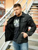 Легка літня куртка на блискавці та ґудзиках спереду, що підкреслює чоловічі форми нашивкою "Вінтаж" на рукаві та нагрудній кишені. Куртка має унікальний колір. Поверх куртки нанесені розмиті кольори з ефектом "Sprayed-Used-Look". Це надає куртці вінтажний, старий вигляд. Матеріал: 100% бавовна.