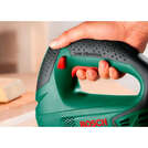 - D-подібна ручка дозволяє точно контролювати поздовжній розпил. Гумові накладки збільшують комфорт та зчеплення з інструментом, навіть в рукавичках.
