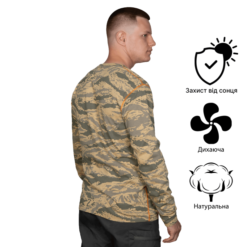 Універсальний лонгслів, для літньої або теплої, весняної погоди. Підійде як повсякденний одяг, одяг для активного відпочинку, полювання, риболовлі тощо.