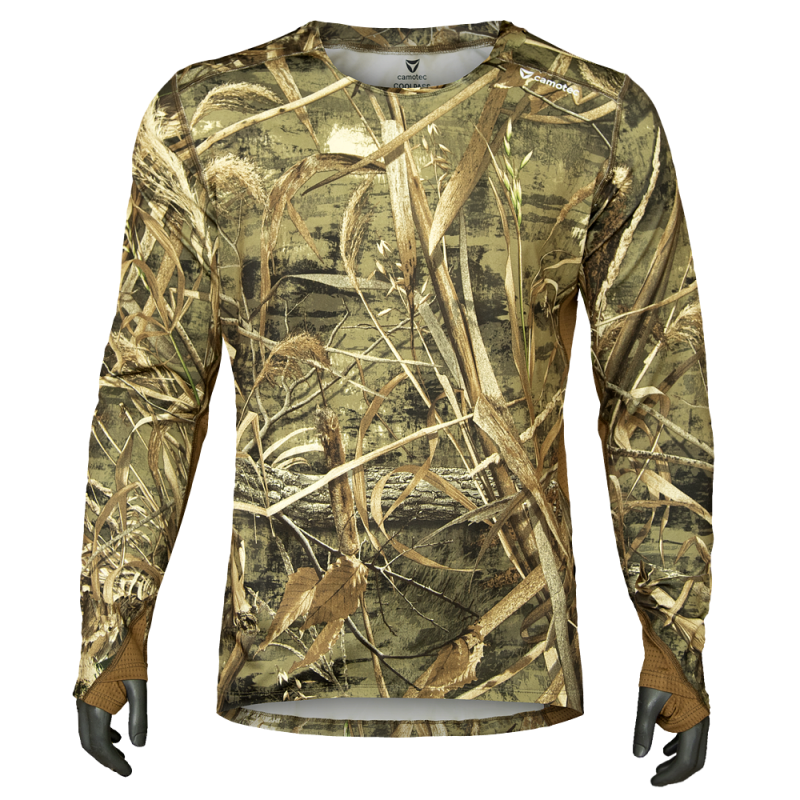 Ще однією особливістю нашого виробу є еластична, посилена нитка за допомогою якої зшито лонгслів, це додає йому міцності та зносостійкості. Лонгслів зшито за технологією плоских швів, має комфортний, ергономічний крій з урахуванням анатомії людини, завдяки чому він майже не відчувається на тілі, не викликає дискомфорт та неприємні відчуття при тривалому використанні. Манжети рукавів досить широкі й мають спеціальний отвір для великого пальця що дозволяє зафіксувати рукав.
