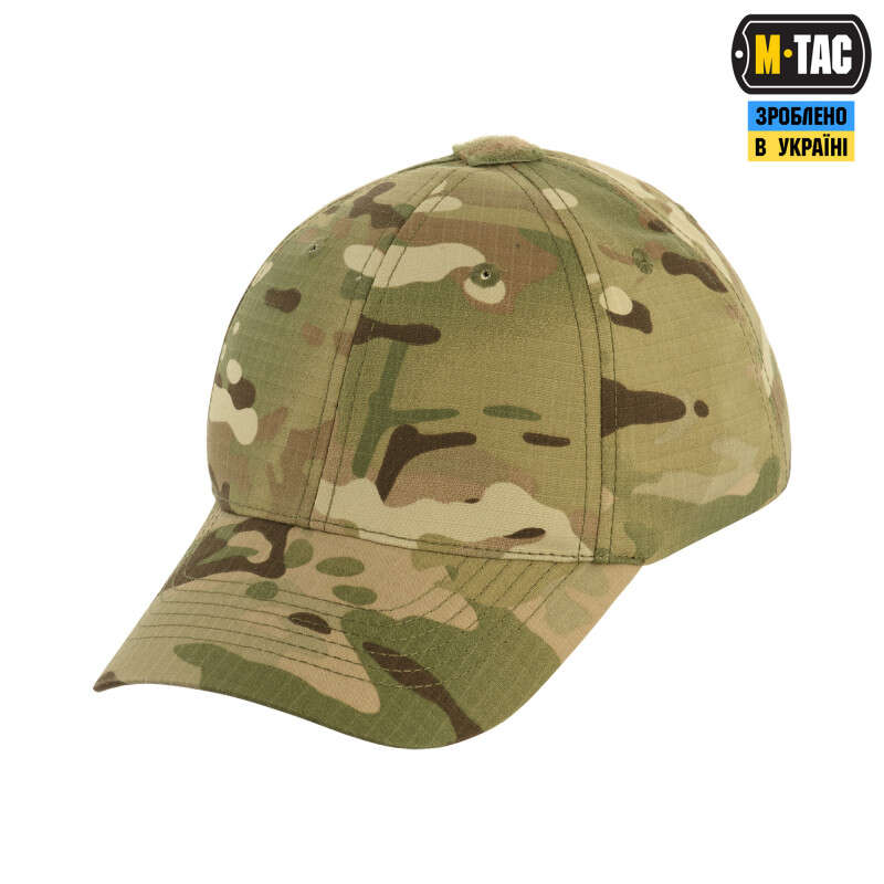 Кепка пошита з легкої дихаючої тканини ріп-стоп (55% бавовна, 45% поліестер). Цей матеріал забезпечує вільну циркуляцію повітря, не парить та вкрай стійкий до вигоряння на сонці. Жорсткий козирок добре тримає форму та захищає обличчя від сонця. Об'єм бейсболки регулюється за допомогою велкро липучки.