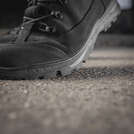 Верх черевиків виготовлений із високоякісної щільної шкіри (замша) товщиною 1,6-1,8 мм, що дозволяє їм бути одночасно вологостійкими, дихаючими, зносостійкими та міцними. Носок і пята посилені шкіряними накладками з резиновим напиленням, які надійно захищають ноги від ударів і роблять взуття більш довговічним.