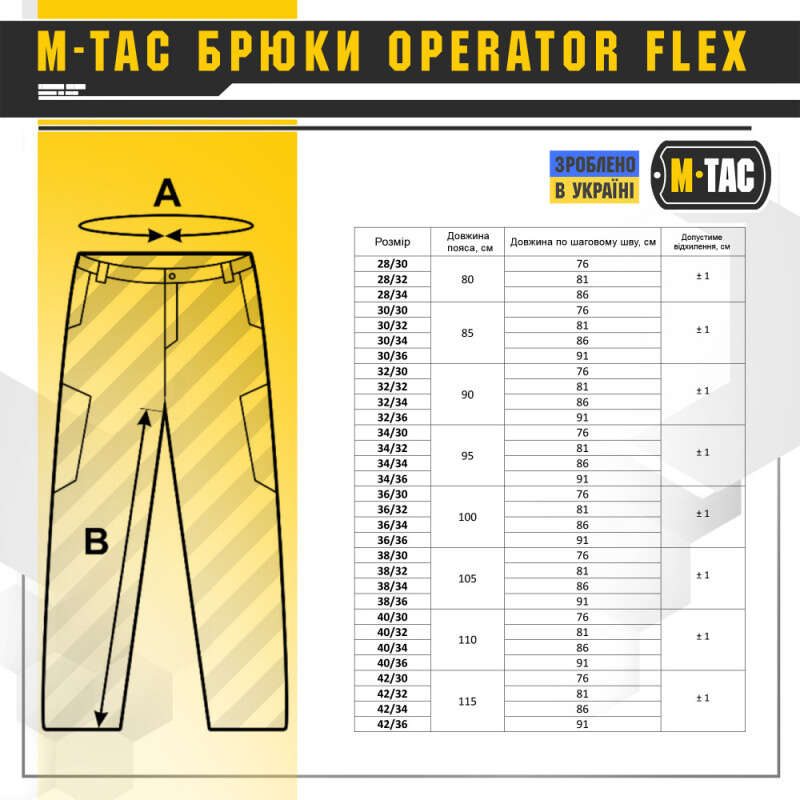 Брюки Operator Flex від бренду тактичного одягу і спорядження M-Tac. Представлена серія Operator призначена для носіння в повсякденному житті, але завдяки посиленим швам і міцній тканині в Rip-Stop, продуманому крою і вдало розташованим кишеням, може використовуватись і для виконання тактичних місій. Пошиті штани з легкої, однотонної тканини. Основним завданням дизайнерів брюк було зберегти комфорт рухів, і з цим вони впоралися на всі сто відсотків - штани створюють відчуття легкості, не сковують рухи і виглядають стильно і солідно. Тканина з вмістом поліестеру і бавовни приємна до тіла, добре тримає колір і відрізняється високою міцністю. Зручні широкі кишені з посиленими вставками. Брюки розраховані на носіння з ременем шириною до 5.5 сантиметрів. Спереду на кріпленнях для ременя нашиті пряжки для фіксування чого завгодно (за допомогою карабінів). Якісна фурнітура від компанії YKK. Добре підібрані за розміром брюки настільки зручно сидять, що створюється враження, ніби одягнений в спортивні штани.