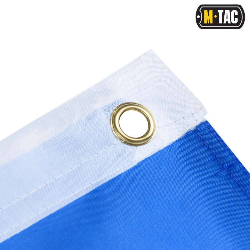 Прапор України від бренду M-Tac являє собою прямокутне полотнище з двох рівновеликих горизонтальних смуг: верхньої - синього і нижньої - жовтого кольору. Співвідношення ширини прапора до його довжини 2: 3. Матеріал виготовлення - 100% поліестер. Розміри - 90*150 см. У місцях кріплення до флагштоку - два люверса (верхній і нижній). Краї по периметру підігнуті і прошиті подвійною прострочкою.