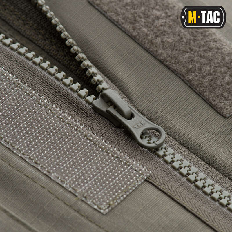 Спереду кітель застібається на пластикову «тракторну» блискавку, закриту грязе- і вітро-захисною планкою на липучці velcro. Блискавки - YKK (Японія).