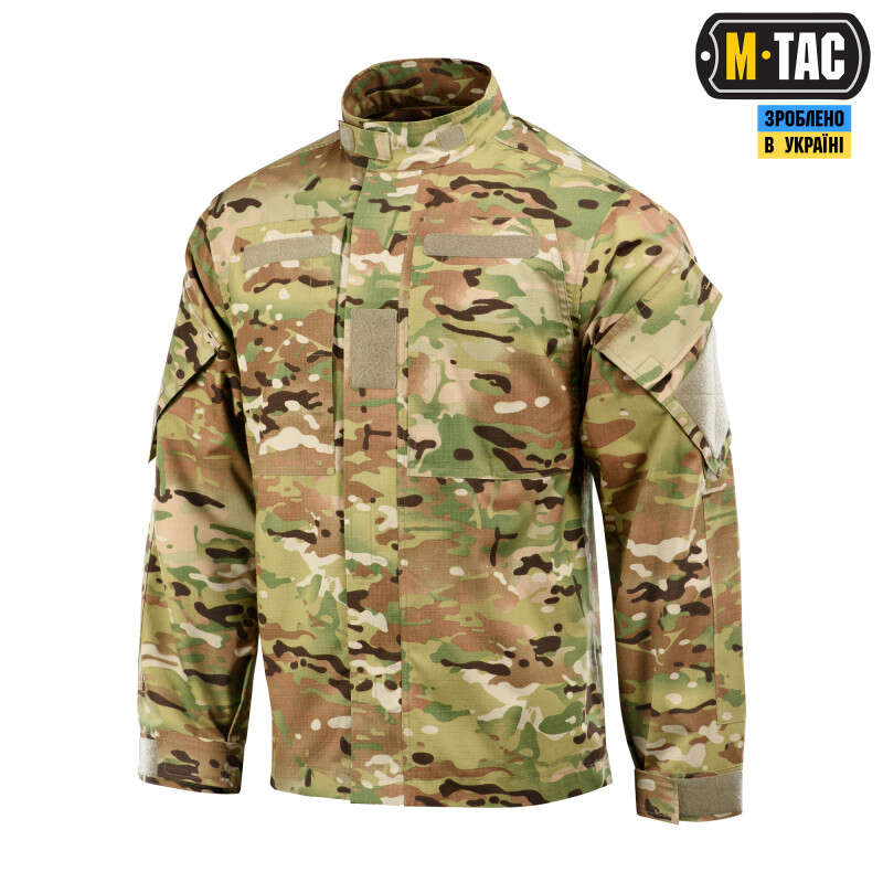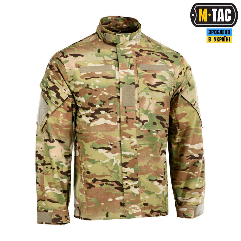 Польовий кітель ріп-стоп в забарвленні Multicam від вітчизняного бренду M-TAC розроблявся для потреб військових. У поєднанні з польовими брюками M-Tac даний кітель утворює повноцінний комплект сучасної польової уніформи. Модель має вільний крій. Завдяки особливостям переплетення ниток, тканина не рветься далі одного осередка. У цьому перевага тканини rip-stop перед іншими. Склад тканини: 60% бавовна, 40% поліестер.