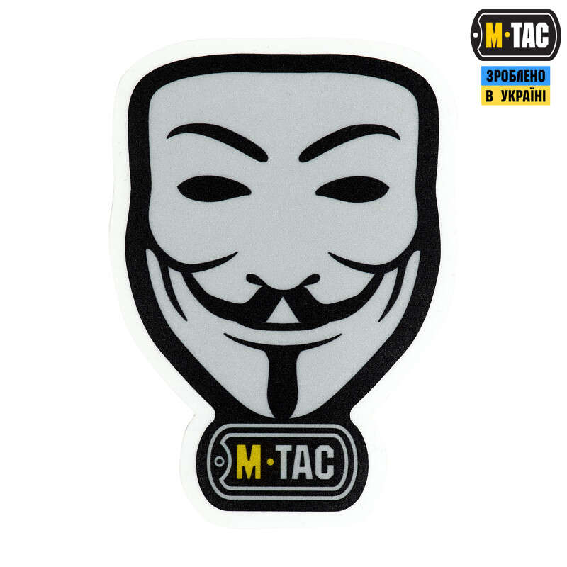 Бренд М-Тас випустив оригінальну наклейку із зображенням маски Anonymous. Вона уособлює анонімність та виступає популярним атрибутом під час протестів. Наклейкою можна прикрасити ноутбук, планшет, телефон, блокнот та все, на що вистачить фантазії. Яскравий та водонепроникний стікер допоможе підкреслити Вашу індивідуальність та втілити будь-які творчі задуми.