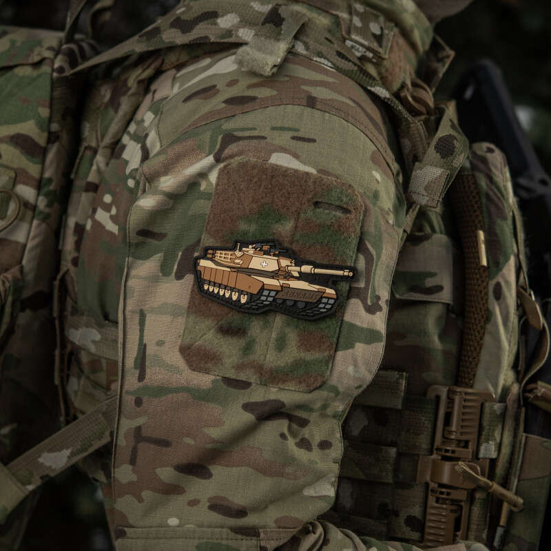 Патч виконаний у формі американського бойового танку ABRAMS. Це броньована, мобільна бойова машина, що здатна виконувати дуже широке коло воєнних завдань. Основні сфери застосування: безпосередня підтримка піхоти, протитанкові операції та розвиток проривів. Завдяки високим технічним характеристикам та тактичній мобільності, ця броньована машина здатна швидко та точно знищувати ворога. Сьогодні бійці ЗСУ успішно використовують ABRAMS завдаючи нищівних ударів окупантам на полі бою.