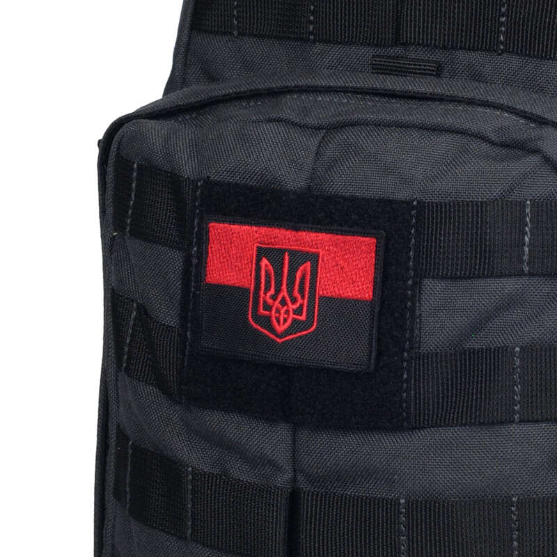 M-Tac нарукавна нашивка прапор червоно-чорний з Тризубом - так званий morale patches - кріпиться на нарукавну майданчик з велкро -липучки, (на самому патчі зі зворотного боку пришита відповідна липучка), або на спорядження - рюкзаки, каски та ін. Статутними не є, але в зоні БД за це не карають. Державний Герб України (укр. Державний Герб України) - один з трьох офіційних символів держави, поряд з прапором і гімном. Центральною геральдичною фігурою герба є «тризуб» князя Володимира..Матеріал виготовлення - текстиль. Колір червоно-чорний. Вироблено в Україні