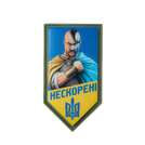 Патч виконаний у формі погону із зображенням козака – відважного та хороброго воїна, що стоїть на сторожі свободи та гідності України. Напис «Нескорені» свідчить про нашу одвічну боротьбу та небажанні підкорятися агресору.