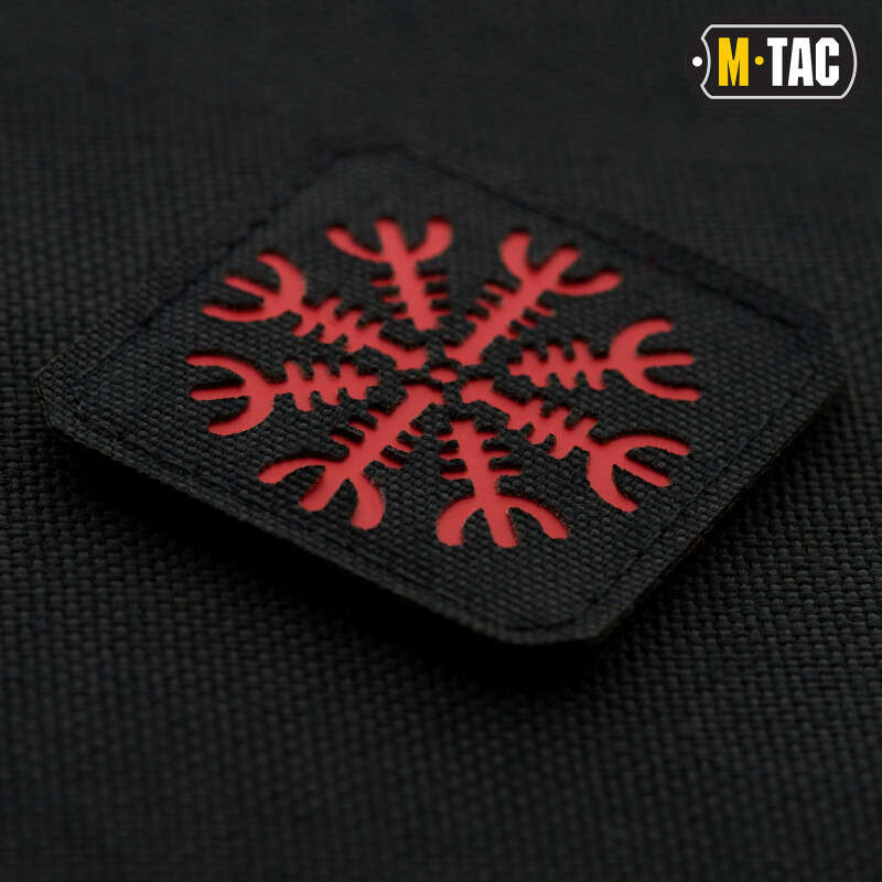 M-Tac нашивка Шолом Жаху Laser Cut із зображенням Егішялм (Шолом жаху). Шолом жаху - ісландський магічний знак на основі рунопису, використовувався в якості захисту від застосування сили, викликаючи почуття страху у противника. Егішялм - амулет, що був популярним в ранньому Середньовіччі, переважно, у вікінгів і північних народів, що населяють територію сьогоднішньої Ісландії. Він відноситься до «шоломів жаху» - знакам, покликаним наганяти страх на ворогів і звертати їх до втечі. Нічого дивного, адже історія народів, а особливо історія вікінгів це, переважно, історія воєн - визвольних, загарбницьких, в процесі яких головною метою була перемога над противником.