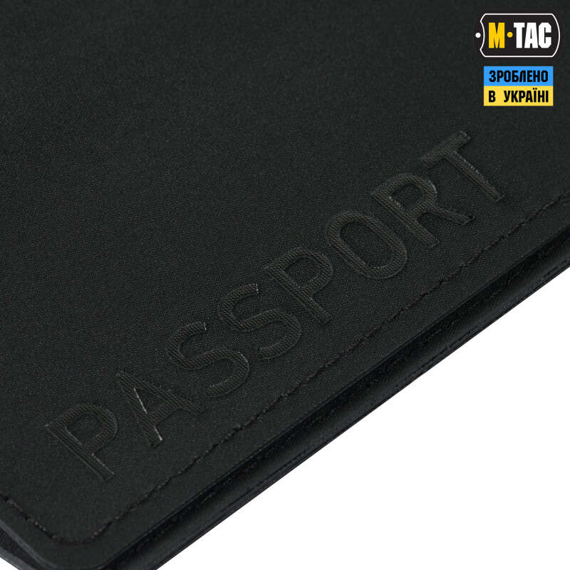 Пошита з сучасного полімерного композиту, який володіє винятковою стійкістю до стирання, міцністю та довговічністю. На лицьовій стороні обкладинки є вертикальний напис «Passport». Всередині передбачені відсіки для пластикових карток та стильний логотип бренду.