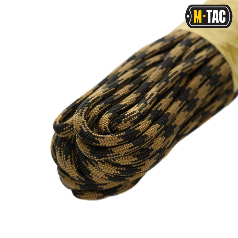 M-Tac паракорд 550 type III - це нейлоновий шнур, що складається з зовнішнього обплетення (велика кількість переплетених волокон) і сердечника (кілька нейлонових ниток, переплетених між собою), що забезпечують його міцність і невелику вагу.