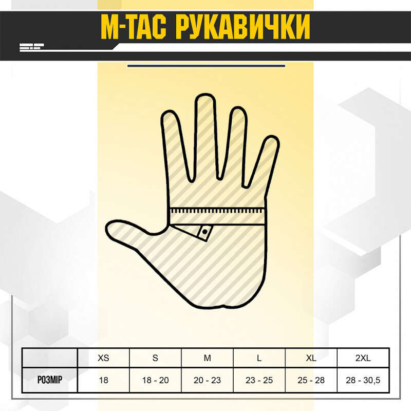 M-Tac тактичні універсальні безпалі рукавички Assault Tactical Mk.4 для роботи зі зброєю. Дана модель має посилену накладку на долоню з натуральної шкіри що запобігатиме отриманню сильних травм і забоїв при падіннях, накладки запобігають ковзанню навіть будучи мокрими. Демпферні накладки на кісточках. Манжета закривається на липучку застібкою, що створює додатковий комфорт.