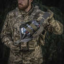 Зовнішній підсумок виготовлений із Cordura 500D – міцного матеріалу, стійкого до стирання та високих навантажень. Внутрішні бічні стінки обладнані нейлоновою стропою, завдяки якій підсумок тримає форму. Додатковим фіксуючим елементом є стяжка, що дає змогу надійно утримувати аптечку навіть при активних рухах. Кріпиться до спорядження за допомогою MOLLE інтерфейсу, виконаного за технологією Laser Cut.