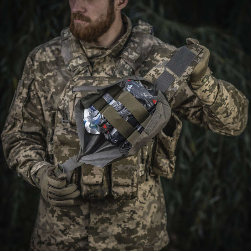 Даний виріб є інноваційним рішенням від бренду M-TAC у сегменті медичних підсумків. Складається з двох частин: основного підсумка та внутрішньої аптечки-органайзера під IFAK (індивідуальну аптечку першої допомоги), що має вертикальний метод вилучення.