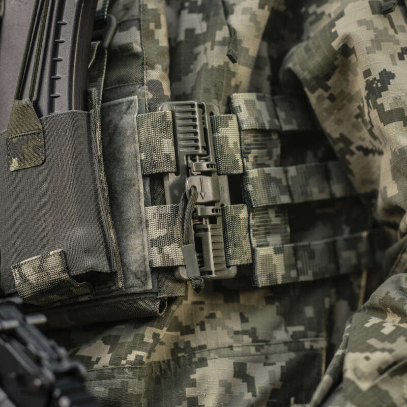 M-Tac плитоноска Cuirass QRS – це відмінний засіб індивідуального бронезахисту в лінійці PLATE CARRIER. Сумісна зі стандартними бронеплитами ESAPI (USA) Medium (31.8 х 24.1 см) зі скошеними верхніми кутами. Дана модель має систему швидкого скидання з фурнітури 2М ROC Buckle і регулюється за обємом.