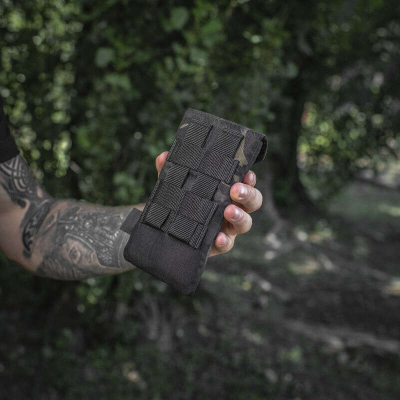 Підсумок Elite Large Hex – це відмінне рішення для дбайливого зберігання смартфона з діагоналлю до 6.5 дюймів. Виготовлений із Cordura 500D і Cordura Hex 1000D – надміцного, зносостійкого та легкого у догляді матеріалу. З внутрішньої сторони відсік для гаджета виконаний із мякого Velcro велюру, що виключає пошкодження скла. Підсумок закривається кришкою-клапаном із магнітною пряжкою Woojin, що гарантує надійний захист телефону від випадання. На клапані розміщений стильний шестикутник із логотипом компанії. Виріб кріпиться до пояса або чіпляється на спорядження за допомогою Molle інтерфейсу. Даний аксесуар стане в пригоді всім, хто піклується про надійне збереження свого телефону.