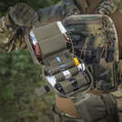 База підсумка виготовлена з ламінованої Cordura за технологією LaserCut. Ідентифікація медичного органайзера передбачена в двох кольорах - традиційний для аптечок червоний або чорний, щоб зробити підсумок менш помітним.