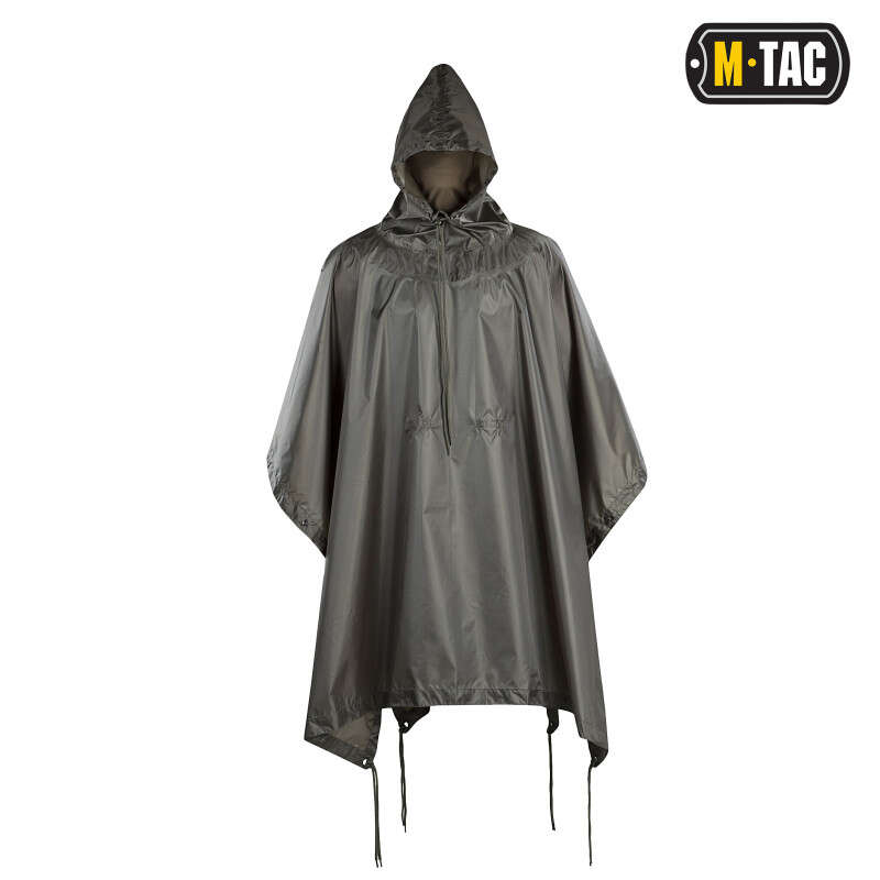 Репліка американського пончо від бренду M-Tac. Матеріал - 100% поліамід. Тканина - Rip-Stop. Комплектація - пончо і чохол. Сам виріб виконує універсальний функціонал. Може служити верхнім одягом в якості накидки від дощу, тентом або наметом в ролі тимчасового укриття. Всі необхідні атрибути для цього (кнопки, люверси, мотузки під розтяжку) вже розміщені на самому виробі.