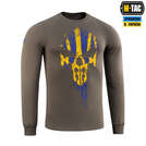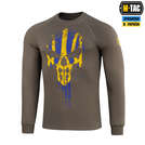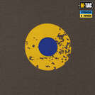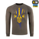 Принт виконаний в патріотичних жовто-блакитних кольорах, на якому можна чітко розгледіти Герб України.