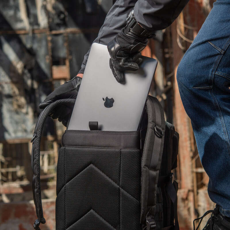 Верхнє закривається двосторонньої блискавкою. Поверх нього є велкро-панель для кріплення патчів, ідентифікаторів або світловідбиваючої стрічки.